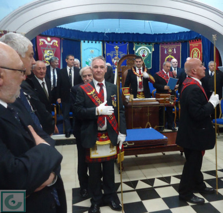 Antonio Morales Benítez recibe el agradecimiento de Keith Sheriff.Keith Sheriff dirige la ceremonia.Ceremonia en la logia.Antonio Morales Benítez y Juan Manuel Román García, con el ministro gibraltareño Joe Bossano.Antonio Morales Benítez, con varios asistentes al acto.