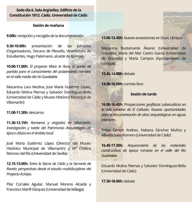 En este evento, organizado por la UCA y Archueos Hum 1129, con la colaboración de la Junta de Andalucía y el Ayuntamiento de Bornos, se difundirán las últimas novedades en investigación, tanto del proyecto Mare in Rure como de otros grupos que han iniciado recientemente sus estudios en la zona. Según los organizadores, estas jornadas «se consolidan como un foro idóneo para el intercambio de ideas y el impulso de nuevas líneas de trabajo sobre turismo cultural y patrimonio arqueológico en la sierra gaditana».