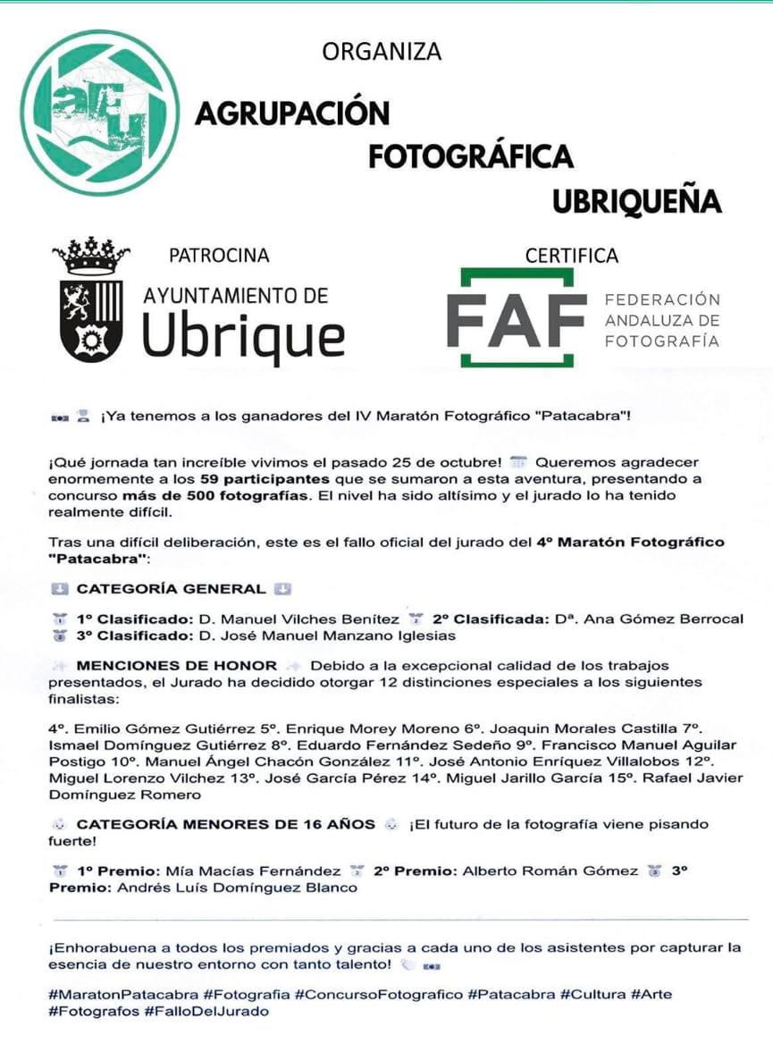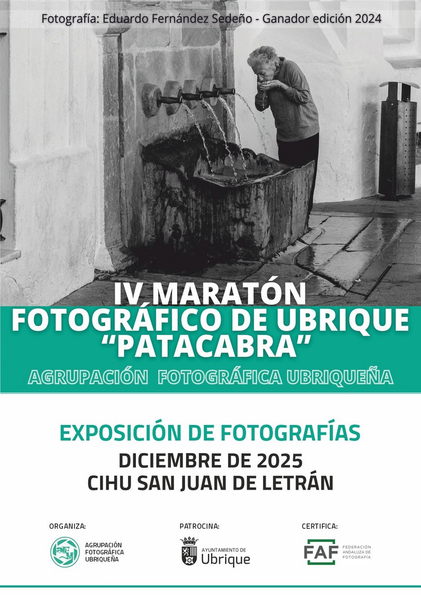 El el sábado 6 de diciembre de 2025, a las 12 horas, se inauguró en el Centro de Interpretación de la Historia de Ubrique (ermita de San Juan de Letrán) la exposición del IV Maratón Fotográfico «Patacabra», organizado por la Agrupación Fotográfica Ubriqueña y patrocinado por el Ayuntamiento de Ubrique. Esta muestra está abierta durante todo el mes de diciembre.