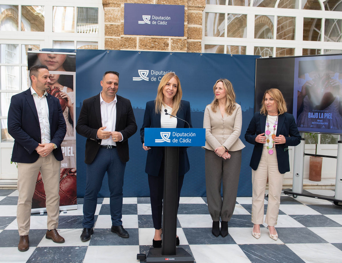 La presidenta de la Diputación de Cádiz, Almudena Martínez del Junco, presentó el viernes 17 de abril de 2026 en Palacio Provincial la tercera edición de la feria <i>Bajo la piel</i>, evento dedicado a «visibilizar y potenciar esta industria de Ubrique, uno de los motores económicos de la Sierra gaditana». Este año 2026 la feria se celebra del 21 al 24 de mayo con un programa de actividades que combina economía, moda, cultura y diversos atractivos turísticos. La presidenta de Diputación estuvo acompañada en dicha presentación por el alcalde de Ubrique, Mario Casillas; la alcaldesa de Prado del Rey y diputada, Vanesa Beltrán; la delegada territorial de Economía, Hacienda, Fondos Europeos y de Industria, Energía y Minas de la Junta de Andalucía en la provincia de Cádiz, Inmaculada Olivero, y el concejal de Turismo, Daniel Domínguez.