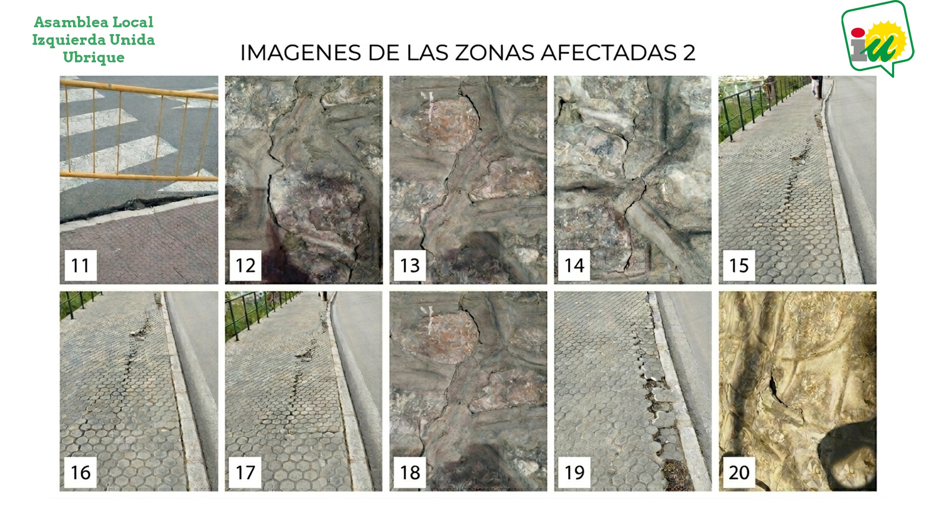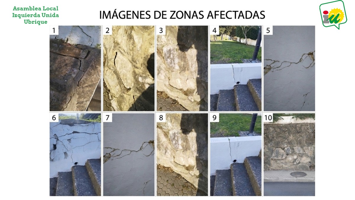 Que la Asamblea Local de Izquierda Unida de Ubrique, en su ejercicio de fiscalización y atención a las demandas ciudadanas, ha constatado el grave estado de deterioro que presentan diversas infraestructuras viarias y muros de contención en el municipio, suponiendo un riesgo real para la integridad física de peatones y conductores. En concreto, se detallan las siguientes deficiencias: